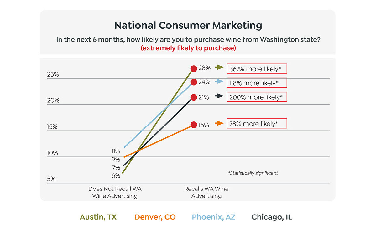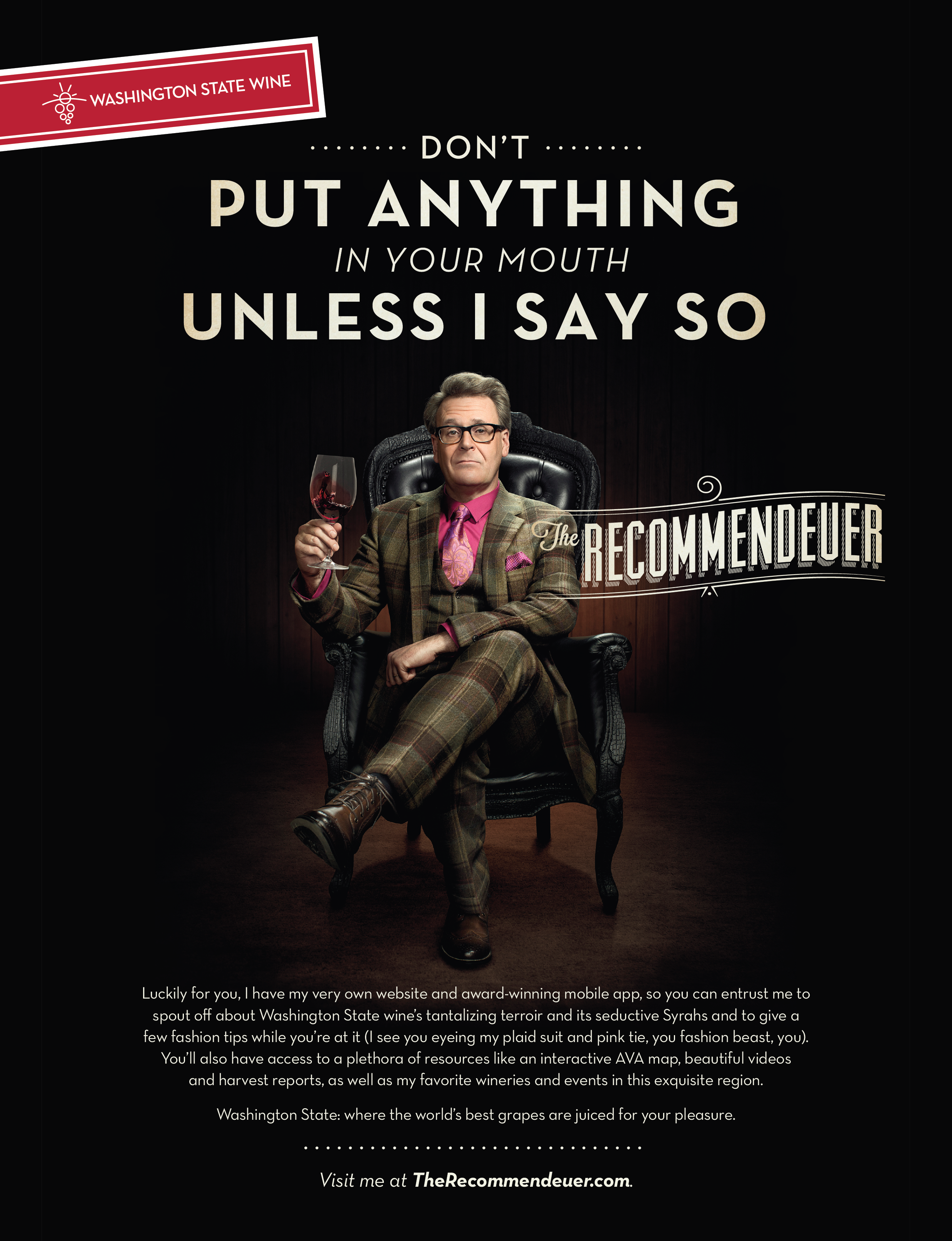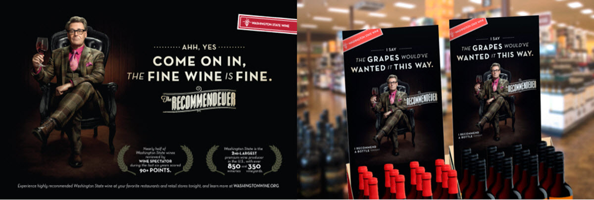RESULTS: We crafted the character named “The Recommendeuer” played by Greg Proops. He communicated all things Washington State Wine in a fun, approachable yet informative manner in a full-scale consumer campaign in select target markets. Elements included digital video, audio, display, print, point-of-purchase and tasting events. We used our media technologies and targeted buying skills to increase consumption of Washington State wines in the valuable LGBTQ audience segment. Washington State Wine achieved statistically significant gains among sommeliers, retailers, and consumers. Share of recommendations among critical national wine retailers and restaurants rose from 12.8% to 18.1%, a 41% increase. We drove a goal-busting 152% increase in total consumer table wine sales while we garnered 67% added value on top of the paid media budget. We even won eleven advertising awards for our work.
